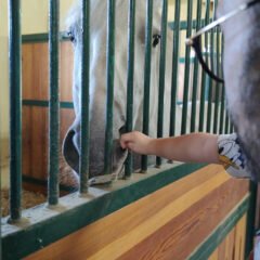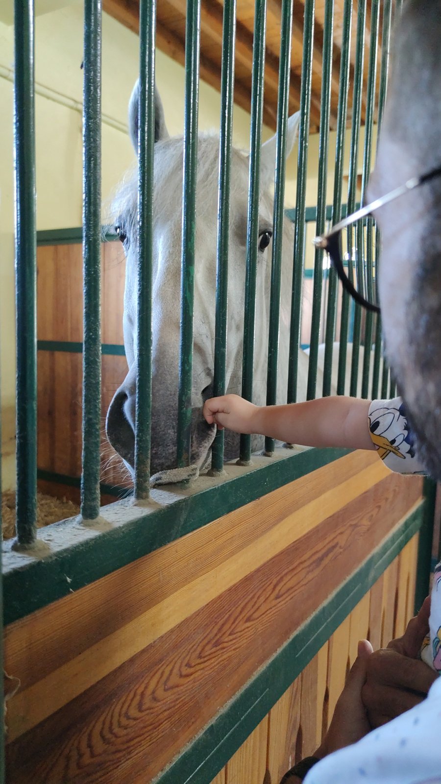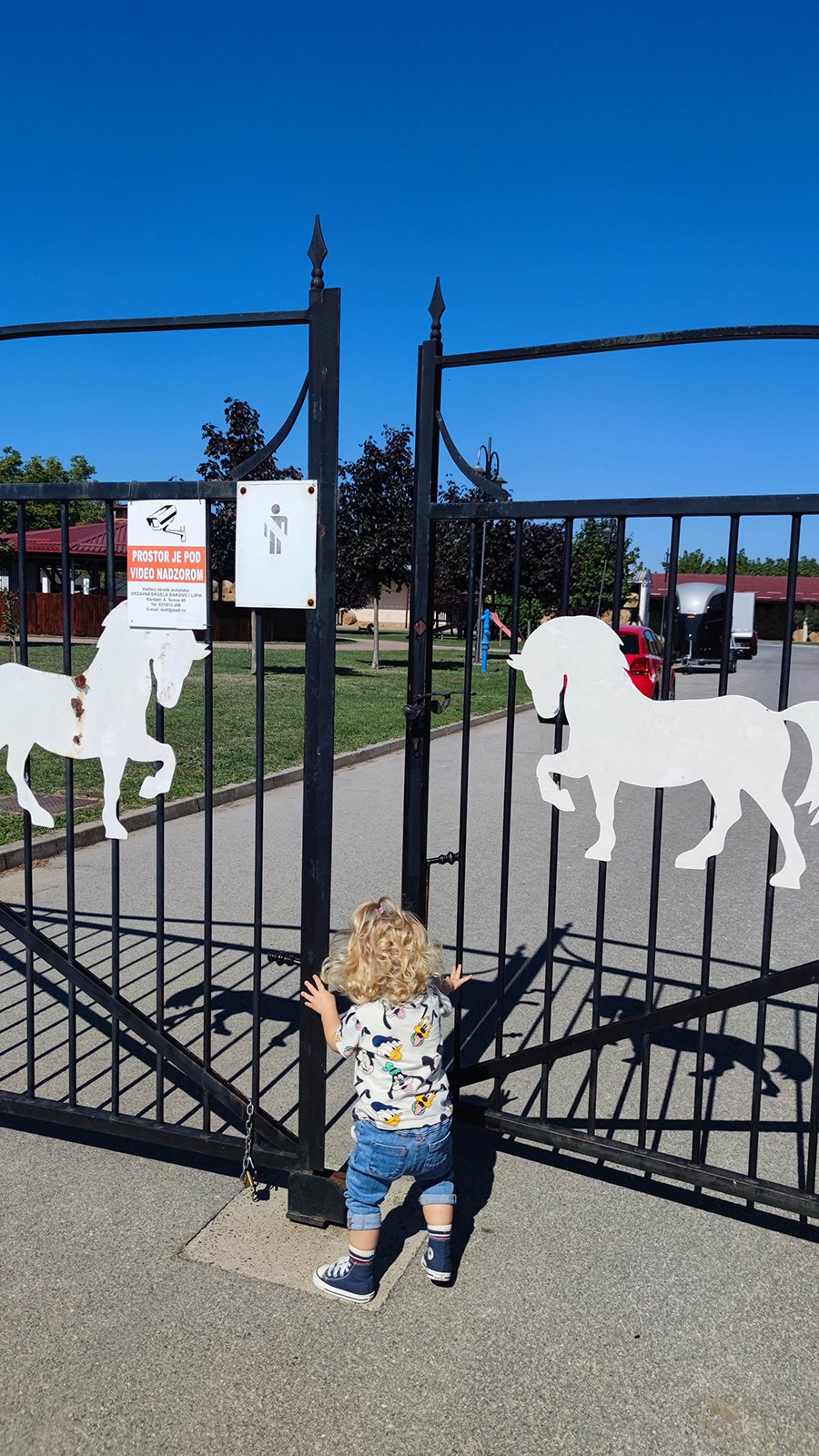 Istog dana (subota) posjetili smo konje, odnosno ergele lipicanaca u Ivandvoru i Đakovu. I tu se malo zeznuli! Naravno, ne zbog samog dolaska te prekrasno uređenog prostora u prirodi, već zbog nes(p)retnog tempiranja vremena. Naime, u Ivandvor smo došli baš u vrijeme kad je većina kobila sa ždrebadi bila na redovnoj ispaši na udaljenom pašnjaku, pa smo uspjeli vidjeti samo manji broj konja. No, Liv je i to bilo dosta da odvali! Ipak, kako bi doživljaj bio potpun, savjetujem vam da prije dolaska nazovete ergelu i upitate kad bi bilo najbolje da dođete. I vidite sve stanare na okupu! Nakon Ivandvora (gdje su smještene kobile i ždrebad), put nas je odveo u pastuharnu u Đakovu. Tamo je „konjska“ situacija bila drukčija – pastusi su bili na okupu, ali svi u zatvorenoj štali. Naime, njihov režim ispaše je ponešto drukčiji jer za razliku od kobila, teško da bi se na slobodnom okupu slagali mirno i idilično – bilo bi tu puno tučnjava i nezgoda! Ipak, Liv je opčinjeno uživala u pogledu na njih te šetnjama ergelom i prostorom za vježbu. Moguće ih je razgledati izvana i iznutra. Za razgledavanje pastuharne odrasli plaćaju cijenu od 20kn po osobi, dok djeca ulaz ne plaćaju. Također preporučujem da prije dolaska nazovete ergelu i pitate kad je najbolje doći (jer ako ulovite neku „mrtvu uru“, starijim klincima bi moglo biti dosadno). Zato, nazovite i sretno –možda ulovite baš jahaći trening! Mi nažalost nismo, ali drugi put…