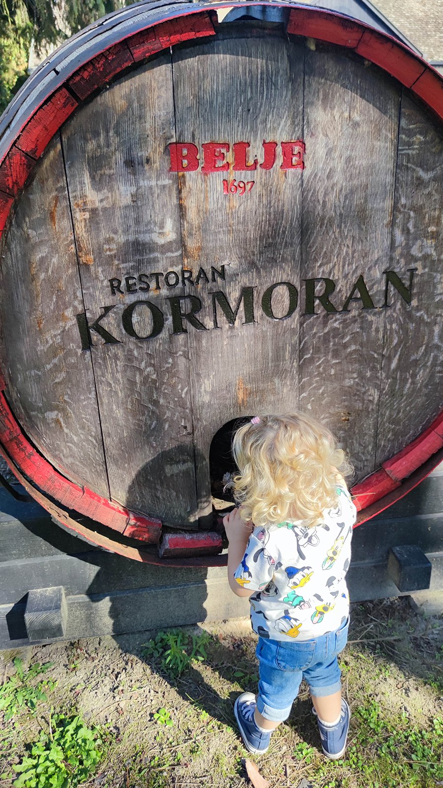 Na povratku smo jeli domaći fiš u sjajnom restoranu Didin konak. Nalazi se kod Kopačkog rita i rezervacija je obavezna jer doslovce ne staju od posla, što ne čudi s obzirom da je hrana odlična. Nakon fiša, bilo je vrijeme za povratak u Zagreb. Prije toga smo svratili u obližnje selo Zmajevac u kojem je netom završio Maraton vina, pa smo zgrabili priliku i prošetati po podrumima te se opskrbiti finim domaćim vinima za doma. Ako mislite da je taj dio bio dosadan za Liv, jako se varate! Svi ti podrumi s ogromnim bačvama bili su joj tako zanimljivi da nije htjela van – jedva smo je nekako namamili u auto!