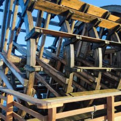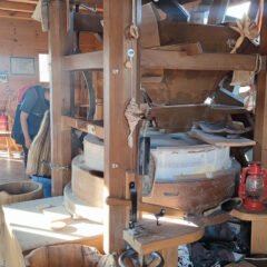 Nakon smještaja u hotel, bilo je vrijeme za vožnju skelom – ili kako kažu Osječani, kompom. Kompa (riječ dolazi od komp, mađarske riječi za skelu) je osječka legenda već dugi niz godina i ako se njome niste provezli po Dravi, vaš doživljaj Osijeka neće biti potpun – jer Osijek i kompa su skoro jedna duša! Na to su nas upozorili naši domaći prijatelji na čiju smo preporuku otišli na kompu i naravno da nismo požalili ni trena. Vožnja skelom / kompom je posebno iskustvo. Za odrasle zen, za klince avantura – Liv nije znala gdje bi prvo pogledala! Kraj kompe se nalazi i prekrasan stari mlin koji je, da stvar bude bolja, još uvijek u funkciji pa ga je moguće razgledati i na licu mjesta pokazati klincima kako se melje brašno. Štoviše, klinci mogu sami ubaciti klip kukuruza i pratiti što se s njime događa. Liv su skoro oči ispale od sreće!