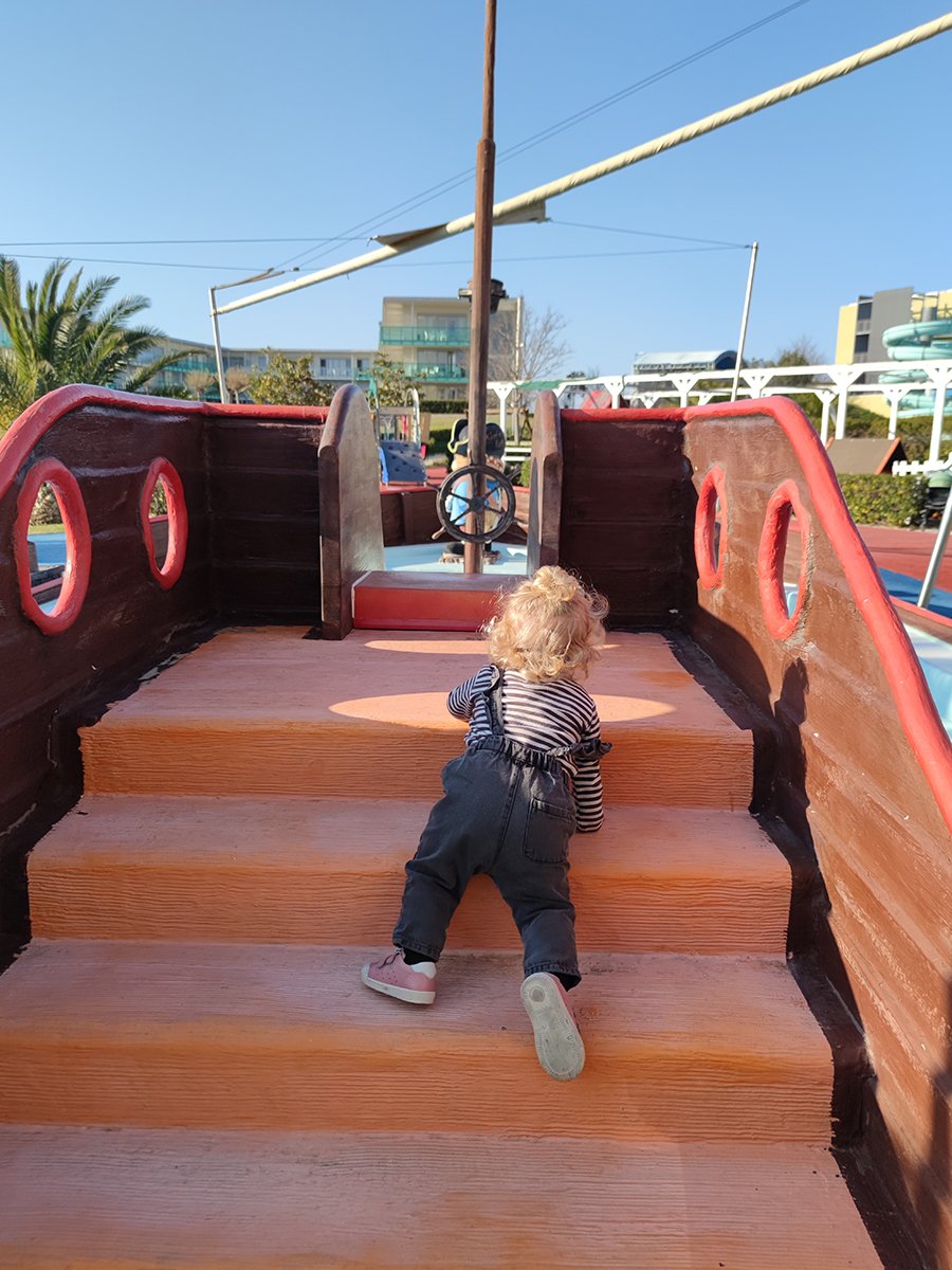 Destinacija su bile sunčane Petrčane i tamo smješteni family hotel Falkensteiner, koji vrlo visoko kotira kad u google ukucate „hoteli za djecu“. I ima zašto – u ta nas je 3 dana sve oborio s nogu, uključujući i Liv koja je nedavno prohodala.