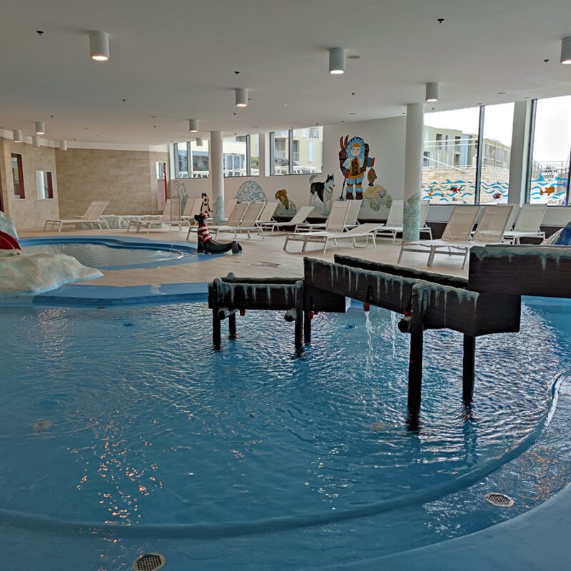 Evo nas i kod drugih voda! Na bazenima (i u bazenima) smo posebno uživali. Prije nego što smo uopće došli do njih, oduševilo nas je što je, uz nas dvoje odraslih, i Liv dobila svoj mali, slatki bademantil od nježnog i kvalitetnog mekog materijala. Tako full opremljeni stigli smo na bazen(e). Naime, family hotel Falkensteiner ima više vanjskih i unutarnjih bazena od kojih su neki potpuno i sigurno prilagođeni za bebe. Uključuju predivno uređeni, zabavni aqua park sa simpatičnim vodoskokićima u obliku životinja, male i velike tobogane te maštovite „stijene“ u stilu Ledenoga doba. Liv se jako svidio jedan morski lav i jedva smo je uspjeli odvojiti od njega!
