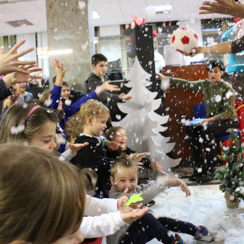 Zaposlenici Fine tako su još jednom pokazali da su svestrana, uigrana i aktivna ekipa koja se zna odlično zabavljati –  s guštom su se pridružili svojim klincima u kreativnoj radionici u kojoj smo zajedno izrađivali elemente iz naše storytelling predstave „Kad će više taj snijeg“. Medo, zeko i vjeverica opet su se pokazali kao sjajni animatori za odličnu atmosferu, ali i vrijedni junaci koji su nas kroz igru i smijeh još jednom podsjetili na važnost prijateljstva, ljepotu darivanja i sve gušte zimskih blagdana!