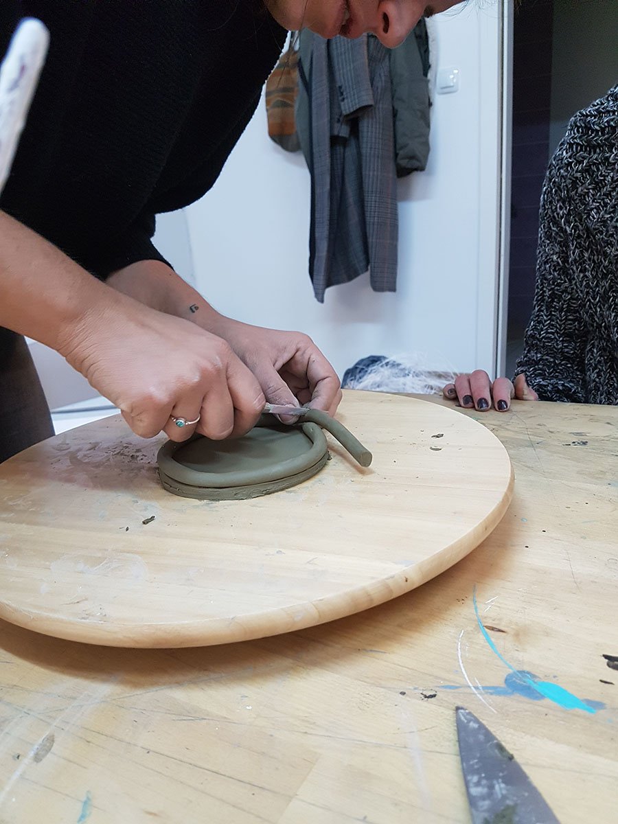 Radionica gline nova je ponuda u Ateljeu na broju jedan: svi koji guštaju u bezgraničnim mogućnostima njezinog oblikovanja ili se žele okušati u njezinoj smjesi, pozvani su na naše radionice koje održavamo u dobroj, staroj drop in varijanti.