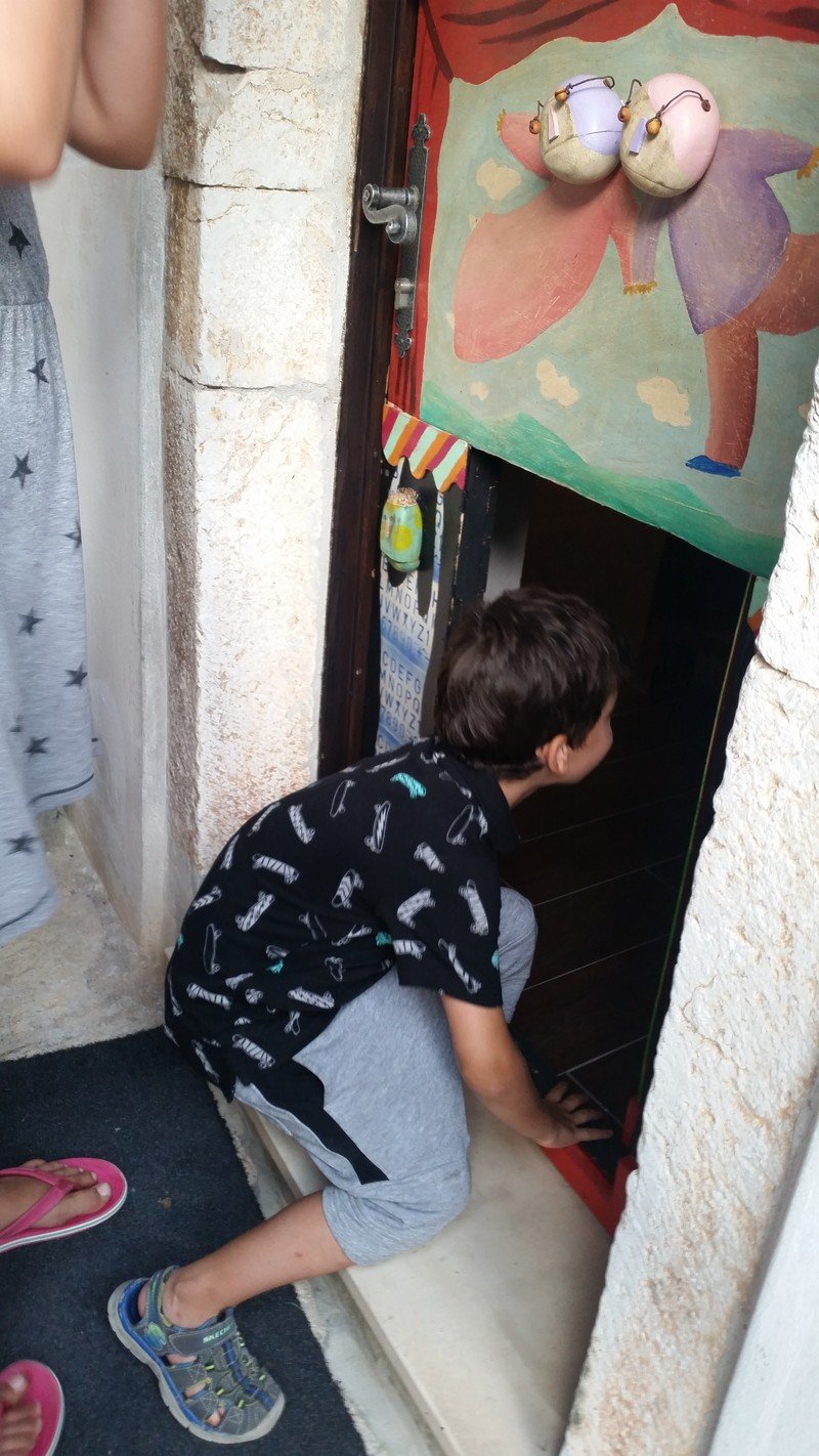 Mislite da je Teatar Oz poseban samo po tome što je najmanje kazalište? E, pa nije samo zbog toga! Uz pregenijalne predstave koje nude, kako bi ušli u prostor Teatra, nakon što pokucate, otvori vam se mali gornji prozorčić na vratima. Kada domaćin dobro pogleda tko je ispred i odobri ulazak, začuje se truba, te se otvaraju donja mala vratašca kroz koje ulaze i veliki i mali :) Odvalile smo!