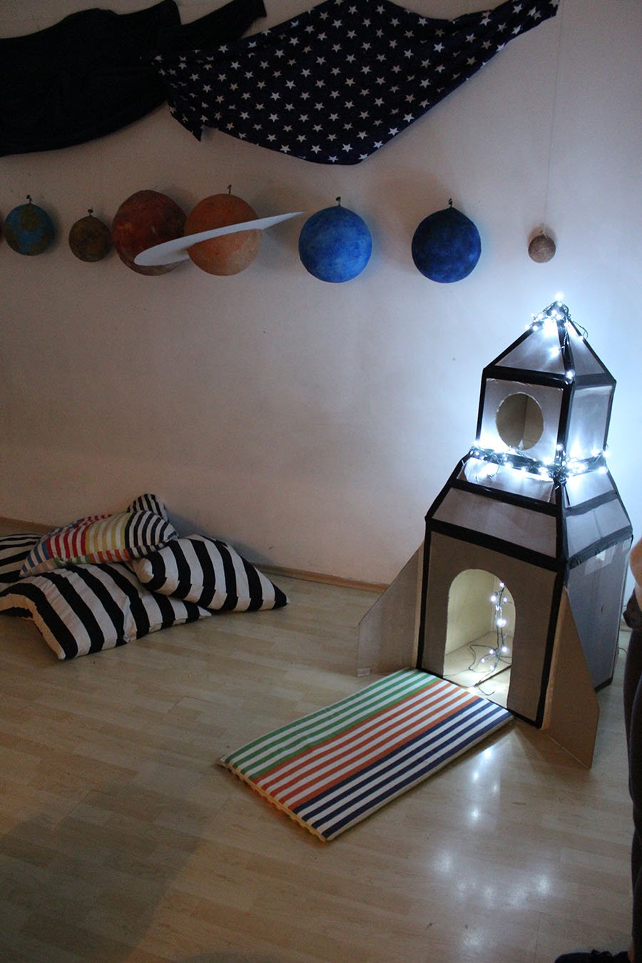 Prvog dana kampa sučemo rukave. Gradimo raketu s komandnom pločom, kreiramo kacige i svemirska odijela. Tu već odmah dolazimo do vrlo važnog pitanja: što ponijeti sa sobom u svemir? Koristi li mobitel, laptop ili tablet, ili se oslanjamo na nešto posve drukčije? I što god da odlučimo, sutra nema kajanja: jer slijedi nam lansiranje i posve nova pravila! Određuju ih sile i neobični zakoni, koje ćemo probati na vlastitoj koži: spoznat ćemo moći kemije i fizike, naučiti što znače mnogi čudni pojmovi. I ono najvažnije: zašto se događaju, i to baš u svemiru?