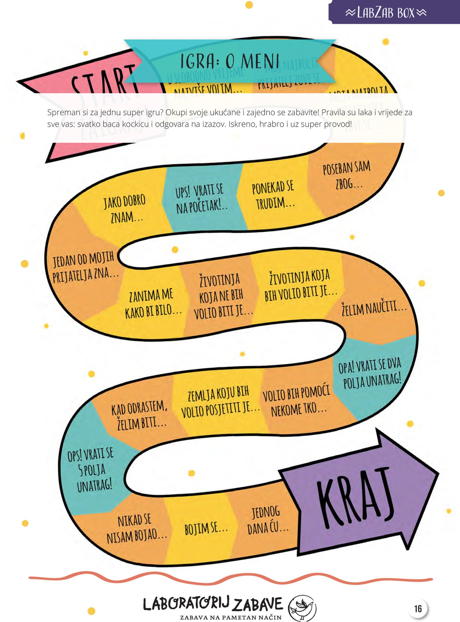 Uz sami LabZab box kojeg dobivate prije kampa, nakon svakog online druženja na mail adresu stiže i specijalno dizajnirani LabZab e-book koji sadrži atraktivne ilustracije, kratke i duhovite tekstove te zabavne audiovizualne upute za igre, aktivnosti i istraživačke zadatke. Sve u ime druženja i učenja kroz igru!