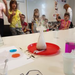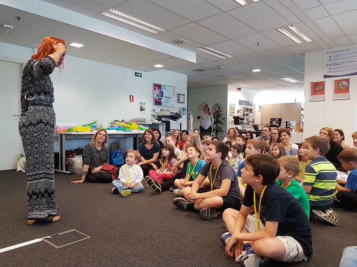 Nakon svih tih važnih poslova, došlo je vrijeme za još malo posla: ovaj put onog koji se skriva iza pitanja što roditelji rade dok rade. Novartisovi klinci već su znali da njihovi roditelji nose bijele kute i mućkaju nešto šareno, reaktivno i znanstveno. A kako to izgleda u praksi: uvjerili smo se sami! U maloj znanstvenoj radionici spajali smo tekućine, bojali boje i stvarali kemijske reakcije: svašta je nastalo iz tog druženja, a najviše odličan provod! Zato jedva čekamo novu priliku da spojimo znanost, igru i obiteljsko druženje. I sve to zasladimo smijehom, pjesmom i kolačem od mrkve!