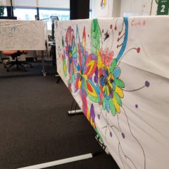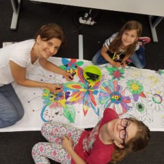 A malci k’o malci: nakon dinamičnog istraživanja terena, odmah su zasukali rukave i bacili se u renoviranje! Odlučili smo se na nešto neuobičajeno, maštovito i super uklopivo u svaku prostoriju: oslikano platno! Razvukli smo ga koliko je dugo i široko, ukrasili veselim motivima, pa ostavili da privlači osmijehe u pauzama i čuva tajne važnih hodnika. I naravno, uspomene na prekrasno druženje i odličan provod malih i velikih koji su opet pokazali što se događa kad roditelji i djeca udruže snage u nešto kreativno, zabavno i maštovito!