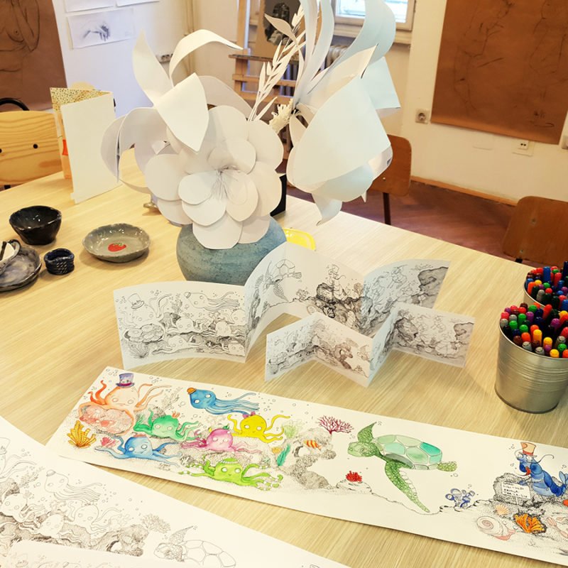 Pažnja! Pažnja! Atelje na br. 1 kreće s novom radionicom za odrasle – radionicom izrade slikovnica. Smišljale smo što bi bilo fora, novo i drugačije, a da je i dalje u našem kreativnom, umjetničkom i slobodnom duhu… Nakon radionica crtanja, slikanja, ilustracije i drugih – uvodimo i slikovnicu!
