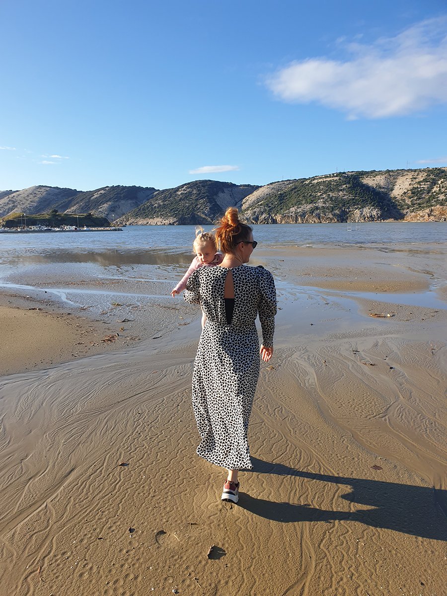 Nakon svake kiše dolazi sunce – pa je tako došlo i na naš zadnji dan. Napokon smo posjetili slavnu Rajsku plažu, koja je uživo još ljepša nego na fotkama. Njen zaštitni znak je savršeni pijesak! On se proteže kilometrima i sjajan je za šetnju – kako za nas odrasle, tako i za klince. Naime, čist je, zabavan i siguran za bose dječje noge te naravno, gacanje kroz plićak. A znate koliko klinci guštaju u tome!