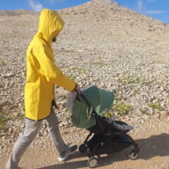 Unatoč kiši koja nas je kupala, utrka Rab Trail ipak se održala. Sa svim svojim rutama, a njih ima više – mogu reći slobodno, za svakoga ponešto. Za iskusnije trkače tu su teže staze, za one manje iskusne ima lakša ruta – istu se može trčati i s klincima, za njih to može biti prava avantura. Naravno, ako je riječ o malo starijim klincima od cca 7, 8 godina nadalje – još uvijek ne postoji utrka za bebe, pa je Liv sve pratila iz svojih kolica.