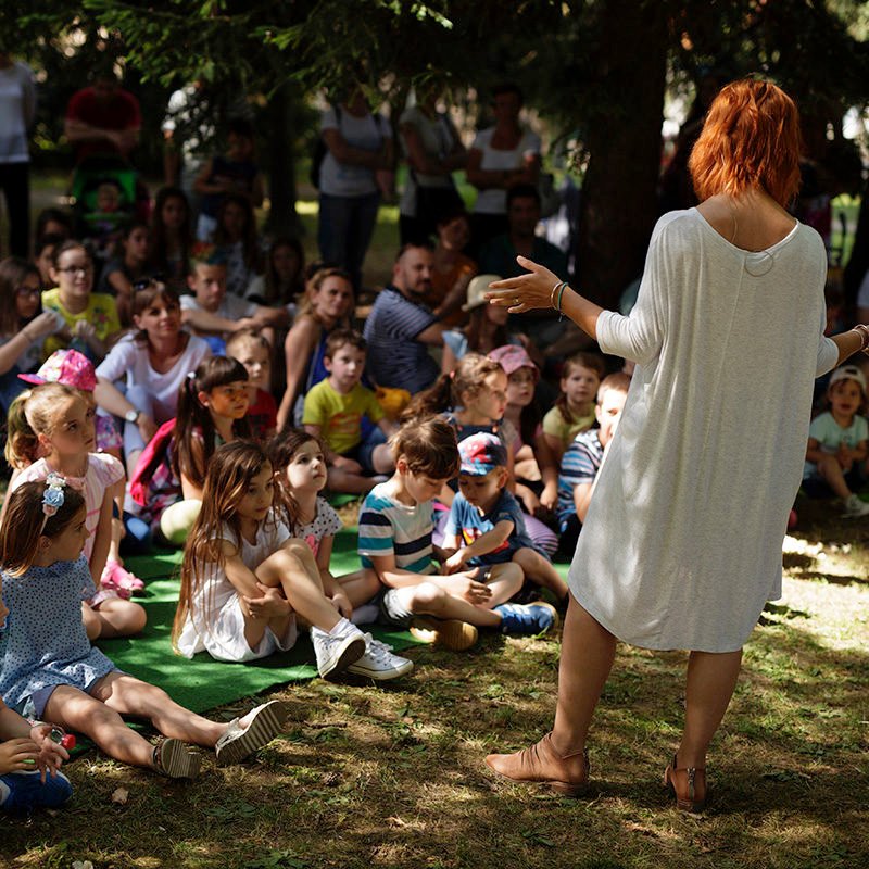 Naše su storytelling radionice namijenjene odraslima koji žele (na)učiti kako ispričati priču za laku noć, basnu za dobro jutro ili bajku za dobar dan. I sve to na interaktivan, poticajan i maštovit način. Na našim se radionicama puno radi, još više uči, a najviše priča. Ples, pjesma, mimika, gestikulacija, neverbalna komunikacija… Tehnike, izvori, savjeti velikih majstora – što god pomaže u (još) boljem pričanju! Vježbamo i radimo u paru, u grupi i individualno. Pripremamo se za samostalno izlaganje priča i uživamo u svakom trenutku, u svakoj ispričanoj riječi i svakom uzdahu oduševljenja iz publike.