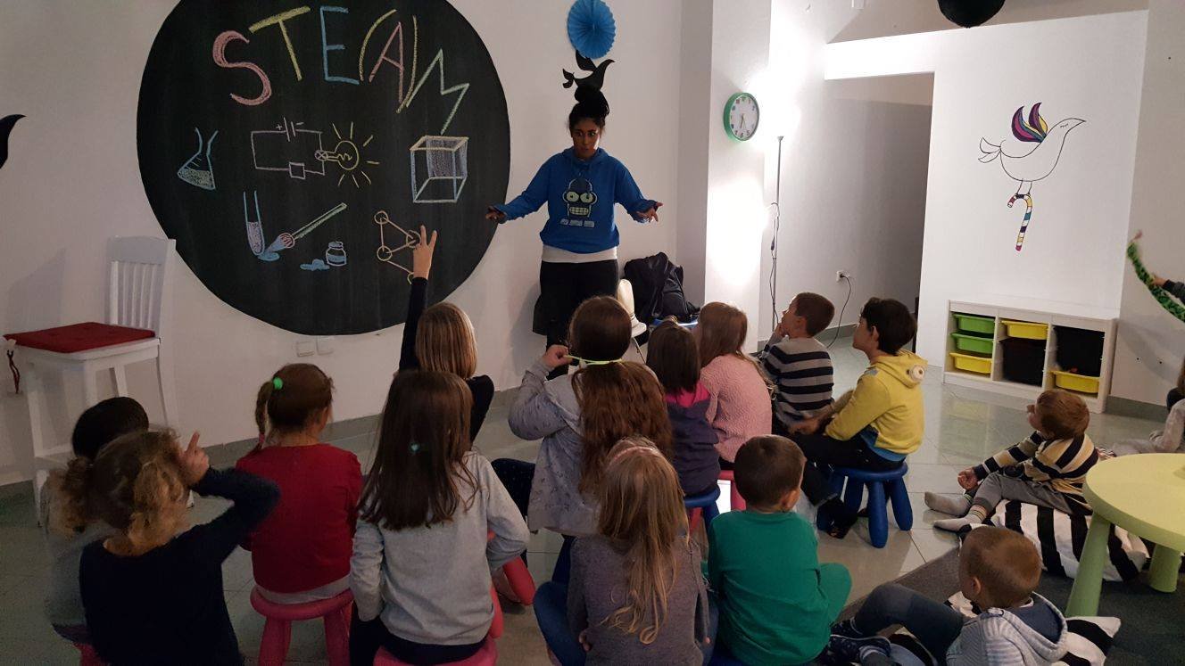 Za one koji još ne znaju: suvermeni i kreativni STE(A)M programi u teoriji obuhvaćaju znanost, tehnologiju, inženjering, umjetnost i matematiku na dječji način. A on je uvijek dinamičan, aktivan i zabavan! STE(A)M povezuje prirodne znanosti s praktičnim umijećem i kreativnim rješenjima, čineći ih tako djeci razumljivim, inspirativnim i zabavnim, s posebnim naglaskom na dječju samostalnost, kreativnost i kritičnost u razmišljanju.