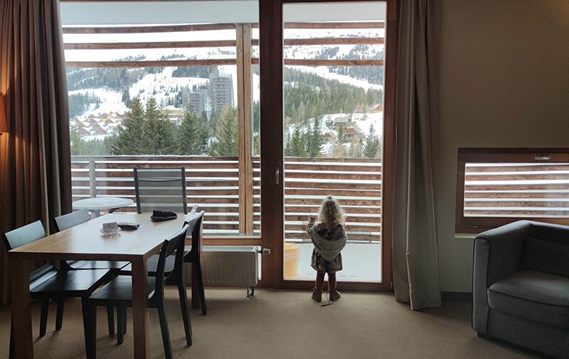 Iako nas je pratilo vrlo lijepo vrijeme, jednog nas je dana ipak dočekala šefica „zimskih gadosti“ – mećava! Ako mislite da smo pehisti, varate se – bio je to poseban doživljaj za kojeg mi je drago da sam ga osjetila na vlastitoj koži, i to u solo snježnoj šetnji iz koje sam se vratila zaleđenih trepavica. Nemojte to propustiti čak i ako niste ljubitelj takvog adrenalina, jer poseban je osjećaj na taj način stopiti se s prirodom – a onda se počastiti kakvom toplom cugom! Naravno, u tu sam šetnju otišla bez klinaca. Ne zato jer su bili u sobi ili u jednoj od igraonica, već jer su bili u skijaškoj / boardaškoj školici. Aktivnosti se, naime, nisu prekidale zbog mećave – iskusni su instruktori znali gdje je zavjetrina i klincima priuštili događaj za pamćenje. Sigurnost i zabava – baš kako i treba za novo iskustvo!