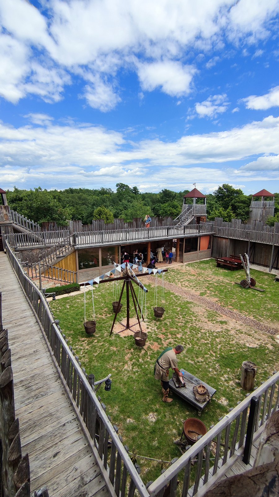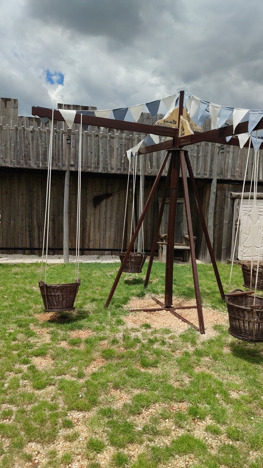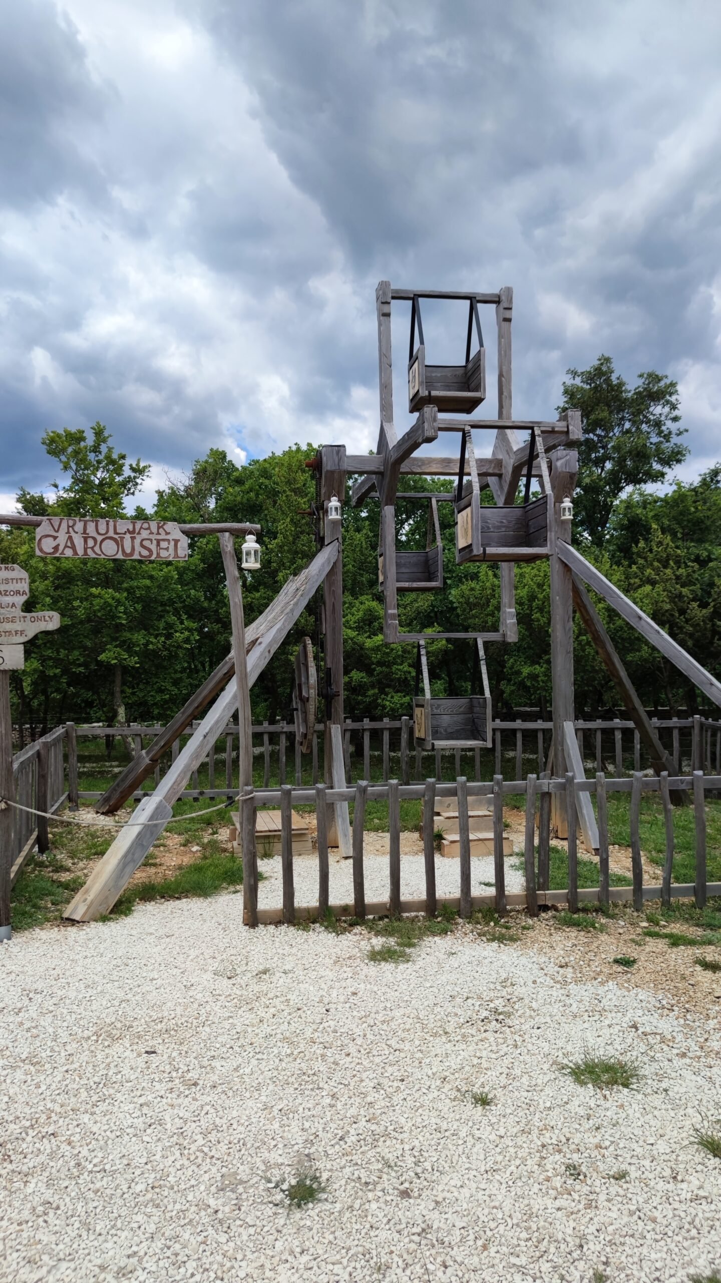 To nam je bio prvi put da posjećujemo Srednjovjekovni park Sanc. Michael i osim što smo vidjeli fotke na Internetu, nismo imali pojma što nas zapravo očekuje. Priznajem da sam zamišljala nešto modernije, odnosno suvremeniji prikaz Srednjeg vijeka za isto tako suvremene klince – no, ono što sam vidjela oborilo me s nogu! Jer, sve je totalno autentično i baš kao u pravom Srednjem vijeku, bez modernih replika i dodatnih (nesrednjovjekovnih sadržaja). To u praksi znači – autentični old school vrtuljci s košarama na ručno pokretanje i ostale sprave za igranje na srednjovjekovni način. Ima sadržaja za klince svih dobi, no Liv je ipak morala propustiti najveći vrtuljak jer je, baš zbog svoje autentičnosti, ipak namijenjen starijim klincima koji se mogu sami držati. Još jednom kažem, on se vrti ručno – kao kakav stari, tajanstveni mlin. A tek je jedna od stanica na putu koji slijedi!