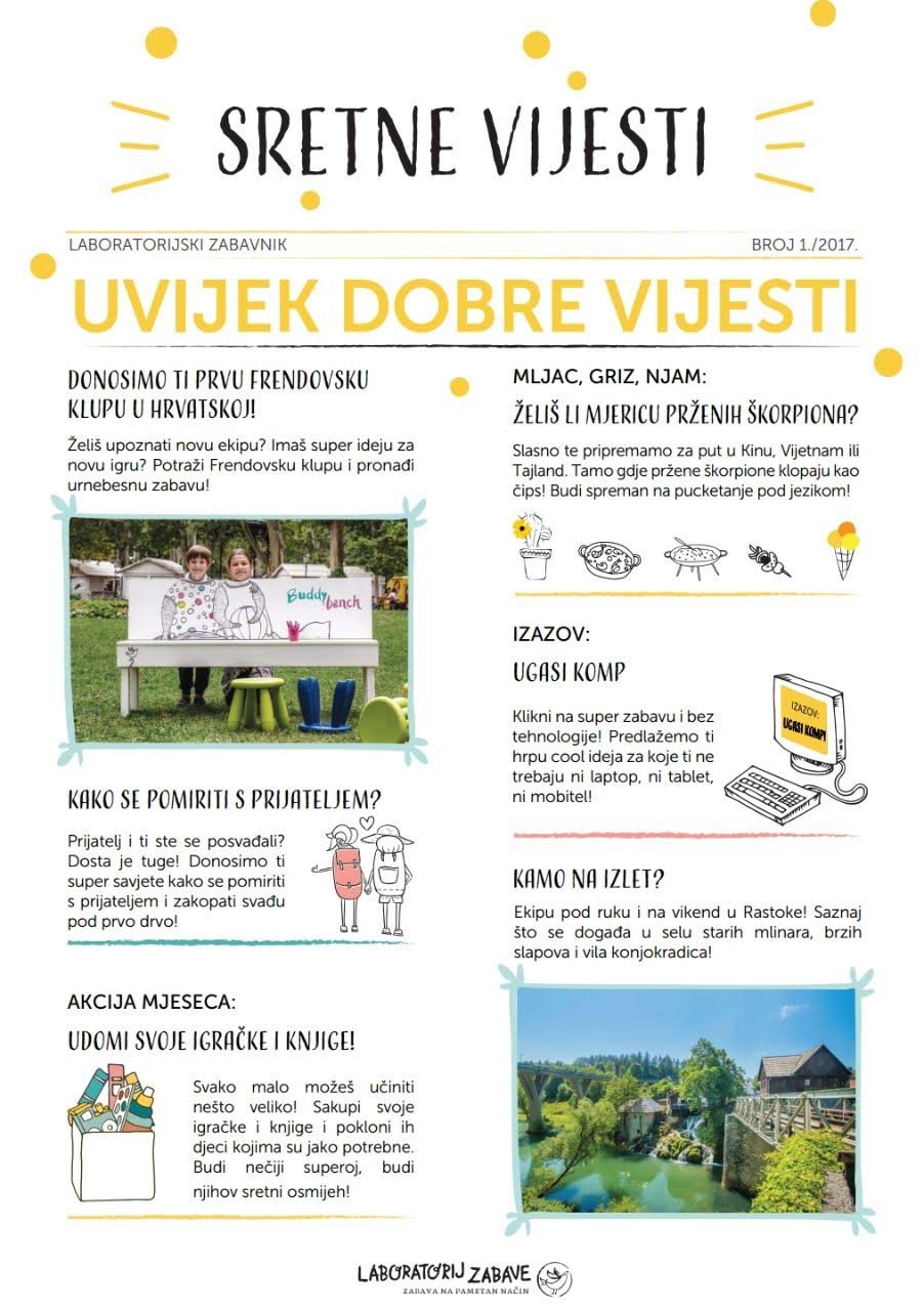 Za sve one vrijedne i pametne glavice kojima nikad nije dosta dobre zabave i maštovitih zadataka pripremili smo još jedno posebno iznenađenje, laboratorijski zabavnik „Sretne vijesti“, pun razno raznih rješavalica, crtalica, pisalica i mozgalica uz pomoću kojih će na zabavan način naučiti još svašta o prirodi, ekologiji i botanici.